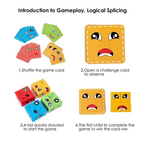 - Build the Face: Use the 16 colorful blocks to replicate the facial expression shown on the card.